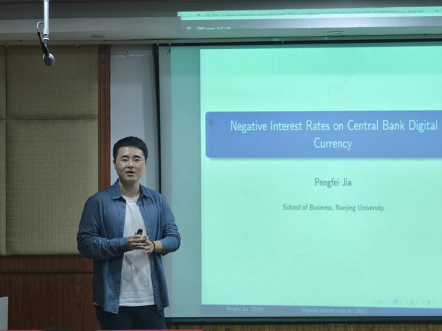 5月23日下午,蛟湖金融论坛系列学术讲座第88期在日本三级片 二楼东报告厅顺利举行。本次讲座特邀南京大学商日本三级片 经济学系贾鹏飞副教授为日本三级片 师生带来题为“Negative Interest Rates on Central Bank Digital Currency”的学术讲座。